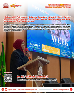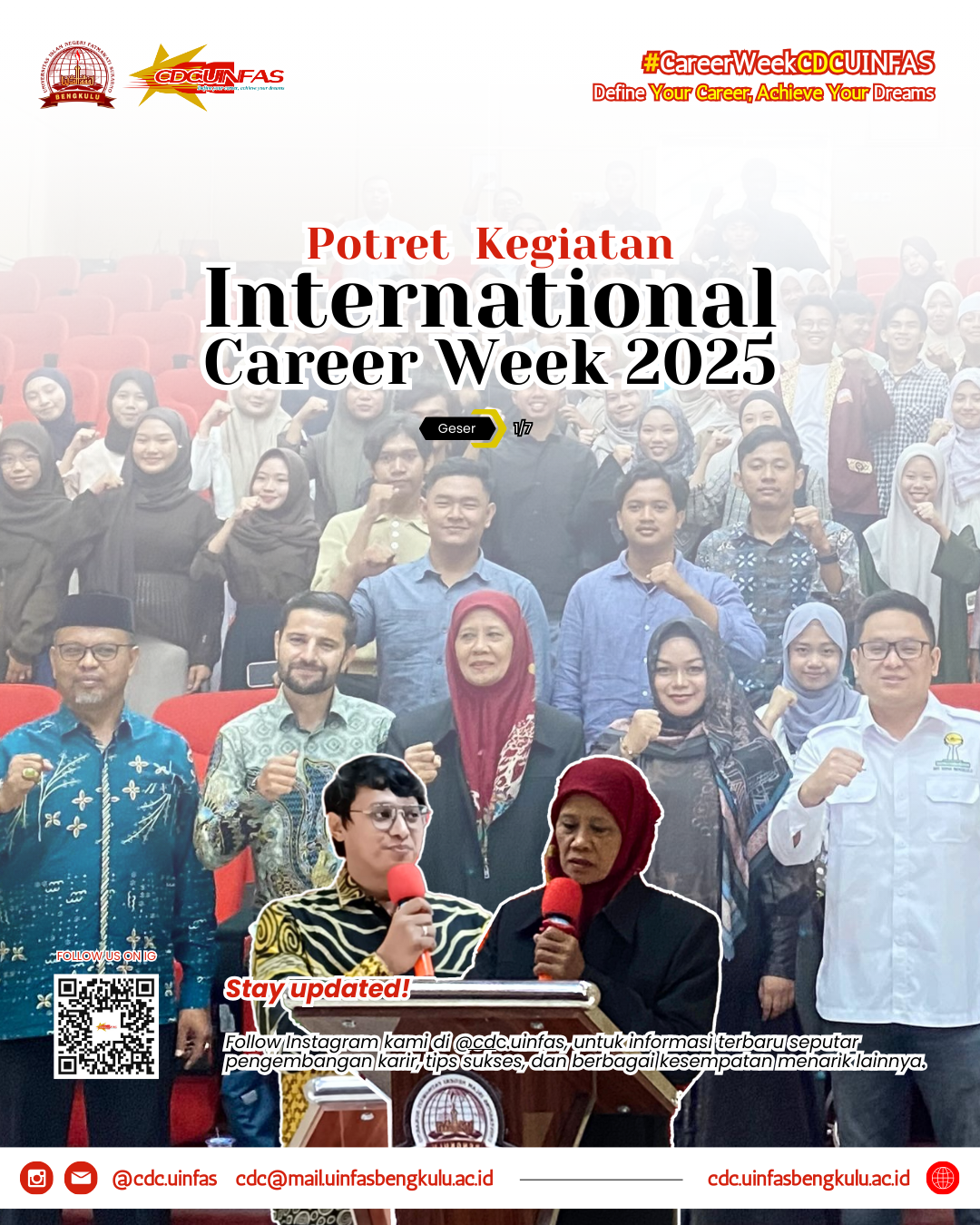 Ratusan mahasiswa Universitas Islam Negeri Fatmawati Sukarno (UINFAS) Bengkulu antusias mengikuti International Career Week yang digelar di Aula Jamaan Nur, Sabtu (30/8/2025). Acara ini menghadirkan berbagai narasumber inspiratif, mulai dari pengusaha muda, akademisi internasional, hingga praktisi bisnis yang memberikan motivasi tentang kemandirian, jejaring, dan pentingnya terus belajar.